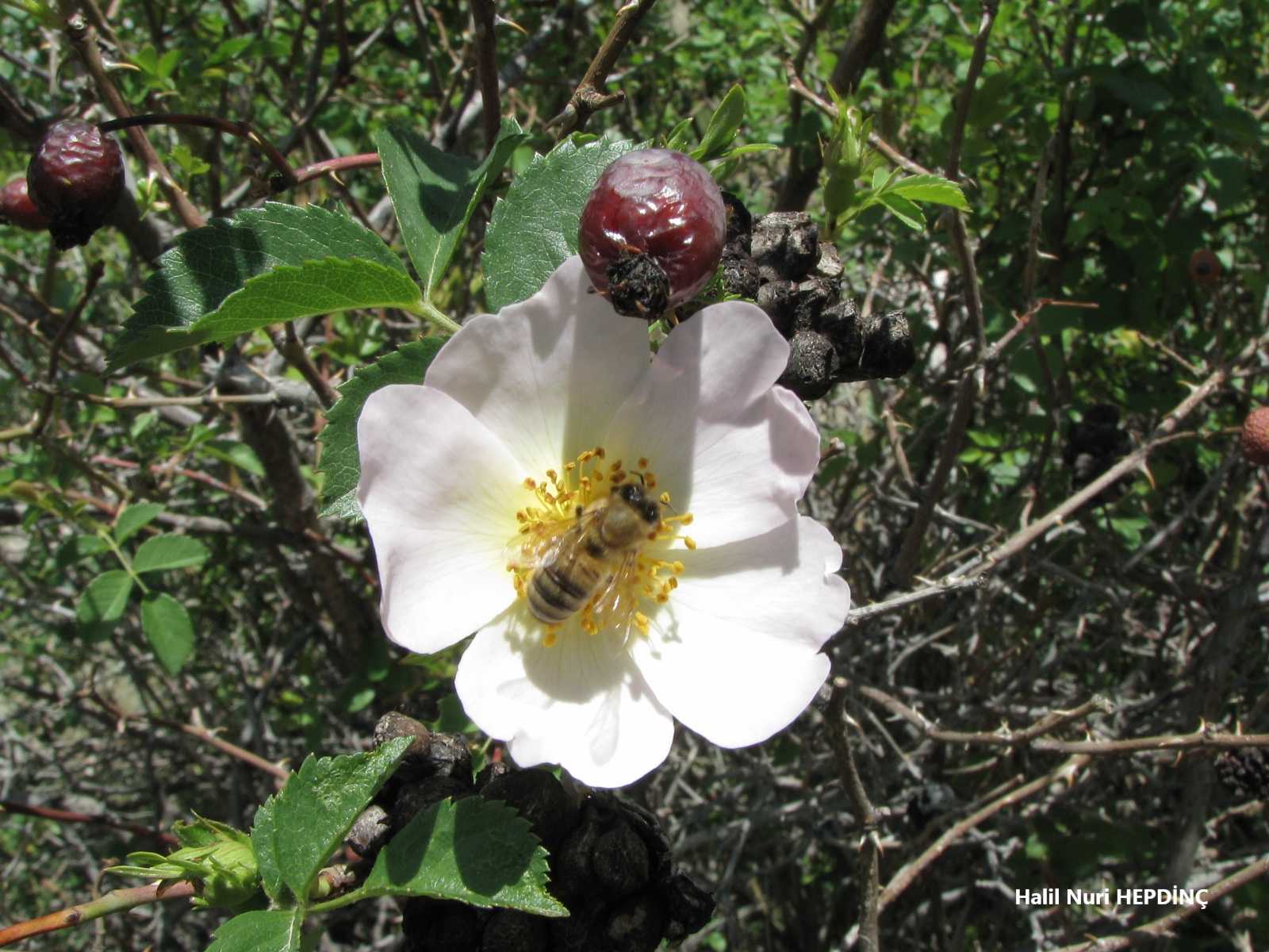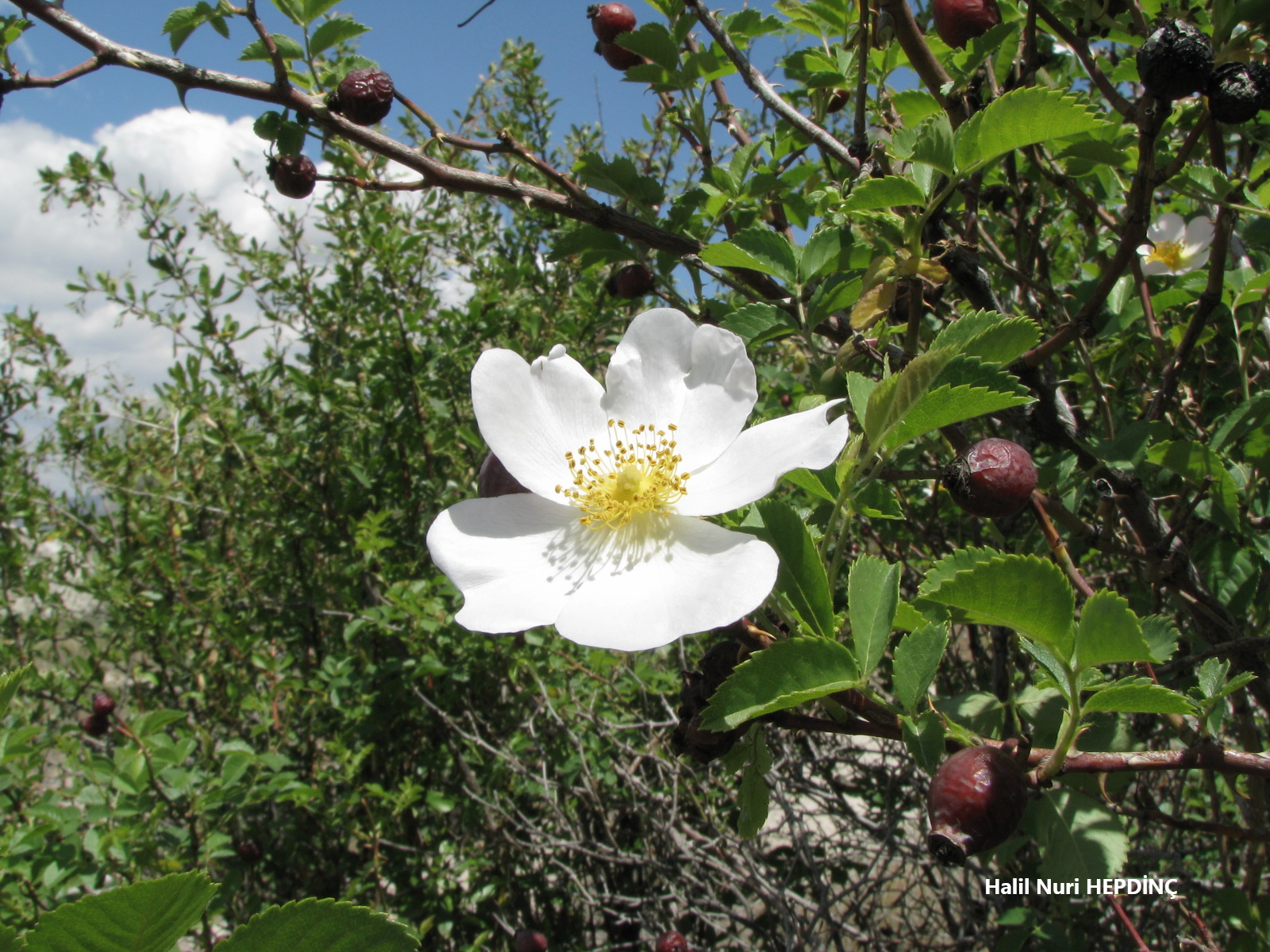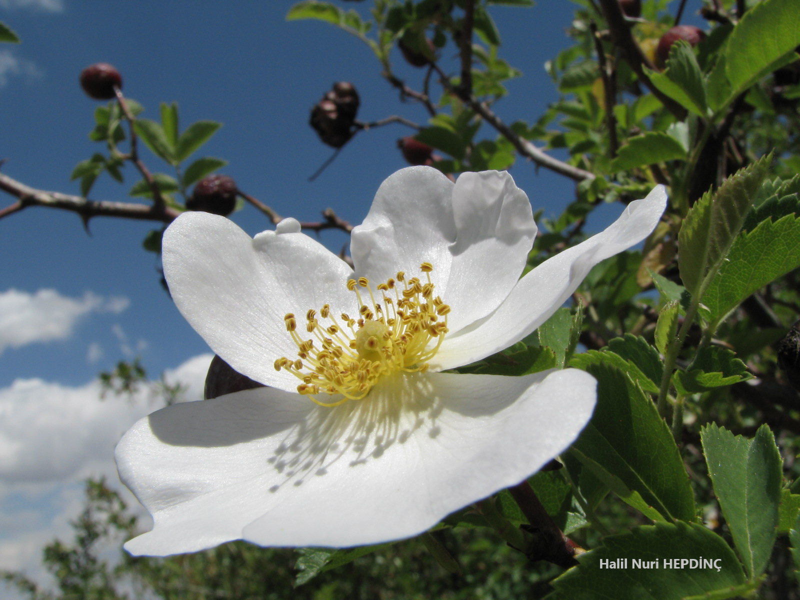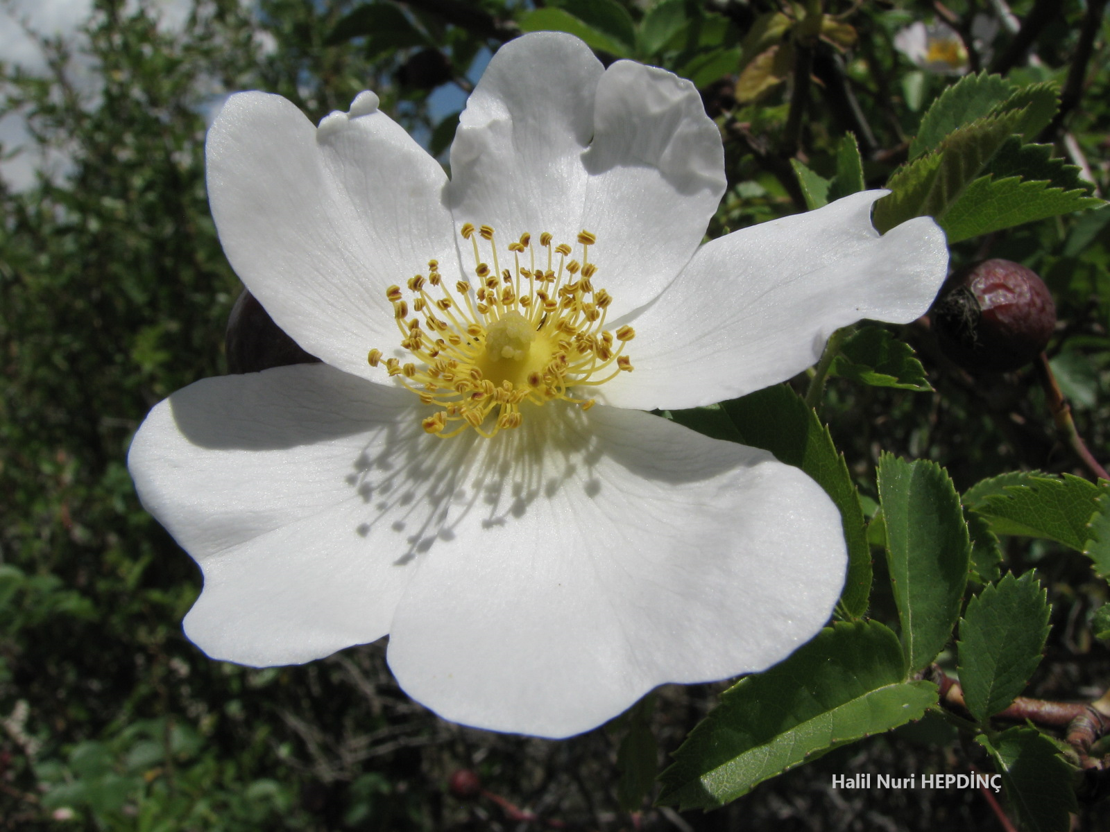 (Çalıdaki tüm çiçekler beyaz renkli)